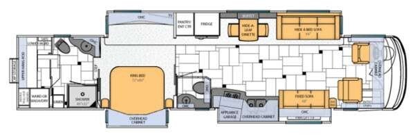 Triple Slide King Aire Motor Home, Rear Bath w/Lav., Toilet, Ward., Shower, King Bed Slide, Half Bath, 2-Burner Range/Dbl. Kitchen Sink/Fixed Sofa Slide, Hide-a-Bed Sofa/Hide-a-Leaf Dinette/Refrigerator/Pantry/Entertainment Center/TV Slide, Overhead Cabinets Throughout & Much More. Available Options May Include: Washer/Dryer.