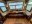 The living area offers stadium-style recliners, a tri-fold sofa (very comfortable), a fireplace, a flat-screen TV with a built-in safe behind it, and storage.