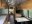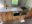 Across from the kitchen, you will find the dinette table that powers down into an extra sleeping area.