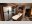Opposite the door side find a slide out dining table with four chairs, and optional theater seating for two with cup holders. Along the interior wall there is a lounge seat with overhead cabinets. There is a nice entertainment center along the outside wall of the half bath that can easily be viewed by any seating in the room.