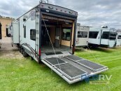 In the rear of this single axle unit find a set of double sized bunk beds that the kids will certainly love, and a corner bath with tub/shower and toilet, plus a separate sinkthat isjust outside the door.