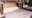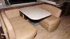 In the kitchen, a residential stainless steel refrigerator, three-burner cooktop, solid-surface countertops, and convection microwave let you prepare meals with ease, while the booth dinette doubles as a dining and workspace.