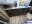 In the living area, youll find a four-seat reclining sofa equipped with lights, heat, massage, and vibration features. The seats do show some typical wear on the vinyl, but they remain fully functional and comfortable. Above the living space is an additional loft bed, perfect for extra guests. On cold evenings, you can relax in front of the fireplace while watching the large flatscreen TV.