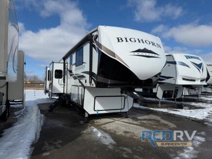 Surprise the family with an exceptional unit like this Bighorn Traveler fifth wheel! The entire luxurious interior is kept open and spacious with five slides so that you can lounge comfortably on the power theater seatingor on one of the two sofas. You will also enjoy spending your time in the rear kitchen because the three-burner range top will keep preparations running smoothly, and all the snacks can go in the two pantries. End your evening by heading to the front private bedroom where you will find a king bed slide for the ultimate relaxation.