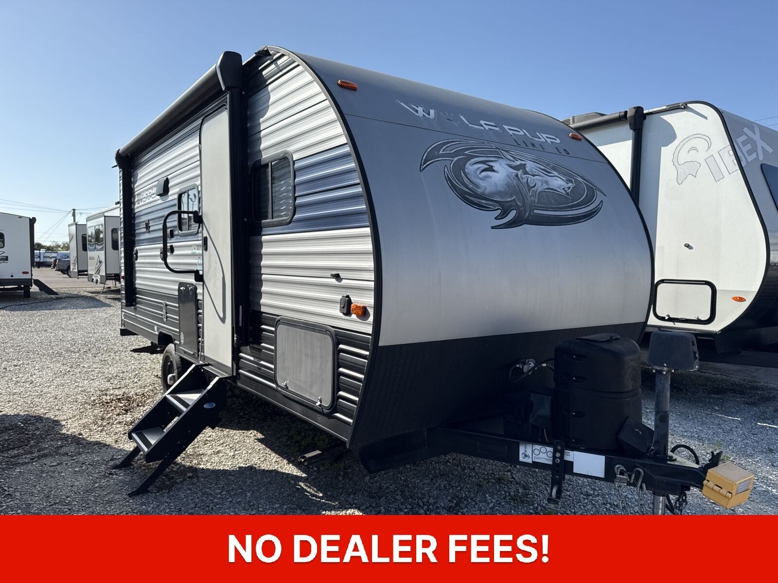 2021 Forest River Cherokee Wolf Pup 18TO:Outdoor Fridge W/ LP Quick ConnectSleeps Up To 7Lots Of Outside StorageVersatile Floorplan, With Convertible Dinette, Sofa, & BunkThe 2021 Forest River Cherokee Wolf Pup 18TO is a compact travel trailer that surprises with how much comfort and flexibility it packs into its frame. The layout includes a full slide-out that opens up space in the living areaso the sofa and dinette really stretch out when parked, making both lounging and meal times feel roomy. Up front theres a queen bed that offers a solid, dedicated sleeping zone, and theres a clever hidden bunk above the sofa so kids or guests have their own overnight spot without sacrificing the main seating areas.The kitchen feels well thought out: good counter space, stove and microwave nicely placed, and storage that doesnt feel like an afterthought. The rear bath is functional enough, with a tub-shower combo allowing comfort without trying to cram in too much. For relaxing and socializing, the windows bring in light, and the slide-out helps avoid that boxy, tight feel common in small trailers.Outside, creature comforts like a power awning (with lighting), exterior speakers, and an under-awning Pup Kitchen, add to campsite living. Quality materials and finishesoverhead cabinetry, decent upholstery, smart layout flowhelp it feel less like basic camp gear and more like something youll enjoy staying in multiple nights. Its a great fit for couples or small families who want something towable, livable, and with a little extra room for guests or gear.