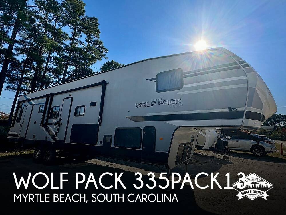 This one-owner 2021 Wolf Pack 335PACK13 Platinum by Forest River combines luxury, comfort, and adventure in one impressive fifth wheel. Designed for those who live for the open road and the great outdoors, it features a spacious 13-foot-by-8-foot garage -- perfect for toys, gear, or additional living space. The garage includes a third air conditioner to keep things cool, no matter where your travels take you.
