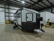 Head to your favorite destinations with your favorite person in this fifth wheel! The front private bedroom has a residential queen bed with a pillowtop mattress, dual nightstands, and overhead storage for your belongings. Freshen up each morning in the full bathroom with the large shower with sliding glass doors and a seat, and there is an LED motion sensor light for nighttime use.You can prepare your best home cooked meals with 21 stainless steel oven with a residential cooktop, and there is an extra deep single basin sink for easy clean up. Eat your meals comfortably at the booth dinette and then relax in the theater seating while you enjoy the entertainment center which has a closet next to it for your storage needs!
