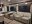 Twin stadium recliners face a retractable flat-screen TV that raises and drops into the countertop and an electric fireplace. The dinette is collapsable for another bed.