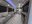 In the entry doorway is a large closet with two shelves and extra space for hanging clothes. There are two bunk beds with an exterior loading door in the back of the camper.