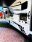 The main living area offers comfortable seating, a large entertainment center, and a well-appointed kitchen complete with solid surface countertops, residential-style refrigerator, generous pantry storage, and everything you need for extended trips.