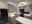 The kitchen is well-appointed: you get a 19 cu. ft. GE Energy Star refrigerator, a 24-inch oven with a four-burner range, an air fryer convection microwave, solid surface countertops, and an island with seating. Theres also a convertible dining table/desk, pull-out trash bins, and hidden pet feeding bowls.