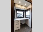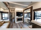 Luxury abounds in this fifth wheel made for full-time living! Step inside and youll be wowed by the large living area with two sofasand an entertainment center. The kids or your guests can make this area their bedroom at night, while you and your spouse claim the rear private bedroomall to yourselves. Here, youll sleep soundly on the king bed slide out, and youll find plenty of storage space, including a dresser for your clothes. You will love waking up in the morning and heading to the gourmet kitchen up front that includes a lighted pantry, dual slides for added space, plus a counter with chairsthe kids will love. This model also includes its own designated closet with washer/dryer prep. The only thing missing in this fifth wheel is you!