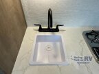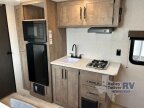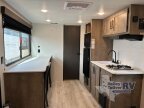 Time spent in this couples trailer will be time well spent! You will love the amount of space you have each day since the queen Murphy bed can be put away to utilize the fold-down sofa. The chef of your group can make breakfast on the two burner gas cooktop and store leftovers in the 3.3 cu. ft. 12V refrigerator. The countertop with two chairs can be used as a desk or for dining space, and the full rear bath is sure to be appreciated!