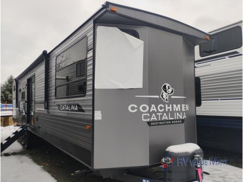 With any Catalina Destination trailer by Coachmen, you will enjoy comfortable extended stays wherever you decide to set up camp! The full length frame outriggers add strength to each unit, along with a seamless Alpha Roof membrane and Norco electromagnetic, powder coated chassis. You will love the open views provided by the large front bay windows, plus there are GE appliances, woodplank linoleum flooring, and hard valance window treatments to make your space feel more like home.Head outside to find a convenient Leash Link quick hookup D-ring for your furry friends, premium JBL exterior speakers, flush mount baggage doors for your gear, and the list of amenities goes on!