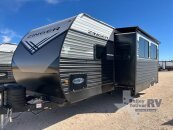 Get away to your own master suite at your favorite destination today! You can sleep on the king bed slide out with plenty of storage for your clothes on the opposite side and get cleaned up in the full bathroom in the 48 shower. There are even dual bath sinks so you both can brush your teeth at the same time. There is also a space that has been prepped for an optional washer/dryer if you like. An added convenience is the centrally located half bath across from the patio doors for easy entry and exit. The front living area provides a sofa that can double as sleeping space for your kids or overnight guests, and the theater seats allow you to clearly see the 50 lift TV with fireplace below. The cook will love the kitchen island, hutch, and pantry with a shelf, as well as the appliances. Dining or even doing a little work will be comfortable while seated at the free standing table with chairs and bench seating.