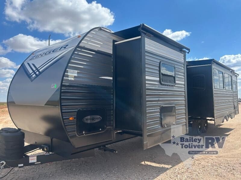 Lead your family to a great vacation getaway in any one of these CrossRoads RV Zinger travel trailers! They come with a fully enclosed underbelly with forced heat (varies by model) so that you can head to your favorite spot no matter what mother nature throws your way. The outside hot/cold shower will help keep mud from being tracked inside, and the Keyed-A-Like lock system will give you peace of mind at night or while youre away from the trailer. With an aerodynamic front end, you will get better gas mileage, and crank up the tunes with the outside speakers with LED accents. Start making memories in one of these models today!
