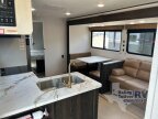 Pack your bags and invite your friends to tag along in this travel trailer! The master suite has a 60 x 74 queen bed slide across from a dresser next to a wardrobe and its own rear full bathroom with a 30 x 36 shower. The front private bedroom has a king bed slide across from a dresser and a front wardrobe next to an area prepped to add an optional washer and dryer, plus an entrance into the dual entry bathroom which has a 34 radius shower. Both bedrooms have an entrance/exit door to the unit and the 60 x 72 patio door leads directly into the kitchen/living area. The chef can prepare delicious meals with the three burner cooktop then you can enjoy them at the 38 booth dinette next to a 60 jackknife sofa for a relaxing evening by the 50 TV at the entertainment center. You even have an outside mini fridge to enjoy a cold beverage while playing a game of cornhole!