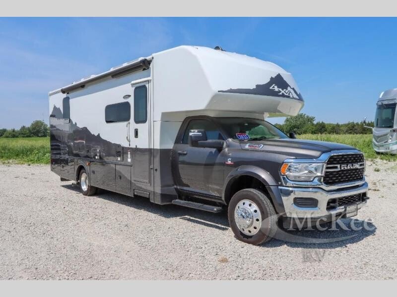 Each one of these Dynamax Isata 5 Super C diesel motorhomes offer control, comfort, and stability thanks to the Ram 5500 SLT chassis with factory 4-wheel drive! They are powered by a Cummins 6.7L I6 turbo diesel engine and an AISIN HD 6-speed automatic transmission. Their construction consists of 2 aluminum-framed, laminated sidewalls with block foam insulation, composite exterior fiberglass, and a composite flooring substrate that is lightweight and moisture resistant. You will see their attention to detail everywhere you look including thermal, reflective front privacy shades, premium cut and buffed paint finish, and a water filtration system for clean water wherever you go. They even have a single 200 watt solar panel with a 30 amp controller so you can go off the grid. Come check out your favorite model today!