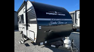 With any Della Terra LE travel trailer by EAST TO WEST, you will enjoy lightweight towing thanks to the single axle, along with many interior comforts. Each model is 8 wide with a 6 9 interior ceiling height so you can walk around freely. There are seamless countertops also, along with motion sensor lights, a shower surround, and a USB charging station to keep your electronics ready to go. Outside, youll find solar prep and ladder prep, an outside shower with hot and cold water, and a power awning with an LED light that will provide you with an inviting space outdoors.