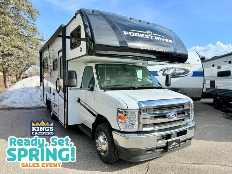 With any Entrada Class C gas motorhome from EAST TO WEST, the construction consists of a one-piecepainted fiberglass front cap, a TPO roof membrane, and 2 Azdel composite sidewalls for added durability. There are rotocast exterior storage compartments with slam latch doors, along with an exterior LP Quick Connect, and a power awning with an LED light strip. You will also find rear and sideview cameras to help make maneuvering and parking your RV easier than ever. Inside, youll feel right at home with soft close hardwood cabinet doors and drawers, a high-altitude tankless water heater, plus a 12V smart TV and USB ports to keep your electronics charged up!