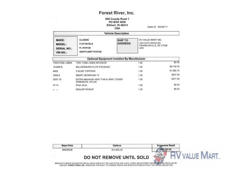 Forest River Flagstaff Classic fifth wheel F361RLS highlights: