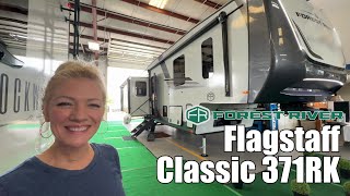 2026 Forest River Flagstaff Classic 371RK:Spacious Rear KitchenMAXXAIR Fan Power Cover W/ Wall Switch3 Slide ToppersSmart Bedroom TVKing BedThe 2026 Forest River Flagstaff Classic 371RK is designed for travelers who want to bring the feel of a luxury home on the road. With its spacious rear kitchen layout and residential-style design, it offers the perfect blend of function and comfort for those who love to cook, entertain, and unwind. The expansive kitchen is tucked into the back of the coach, giving it a true home kitchen feel, with wraparound counter space, upscale appliances, and plenty of room to spread outideal for anyone who enjoys cooking or simply wants the ease of meal prep while traveling.Moving into the living area, youll find a space designed for connection and relaxation. Dual opposing slides open up the room, creating an airy, open-concept living room that feels more like a condo than a camper. With plush seatingincluding theater recliners and a tri-fold sofaplus a cozy fireplace and a large Smart TV, its a space made for slow mornings, movie nights, and everything in between. The elevated front bedroom offers a private retreat, complete with a walk-around bed, smart storage, and a wardrobe thats even prepped for a washer and dryerperfect for extended stays or full-time RV living.Outside, the Flagstaff Classic 371RK invites you to enjoy your surroundings in comfort. With an oversized awning, outdoor speakers, and solid step entry, its easy to set up a welcoming patio space wherever you park. Built with high-quality materials and insulation, this fifth wheel is not just stylish but also four-season ready, so you can chase the sunshine or cozy up in cooler weather without sacrificing comfort.Smart technology gives you control at your fingertips, from lighting and climate to slides and awnings, making travel smoother and more convenient. Whether youre looking for a weekend escape, planning cross-country adventures, or settling into life on the road, the 2026 Flagstaff Classic 371RK offers the kind of thoughtful luxury that turns every trip into a lifestyleand every stop into a destination.