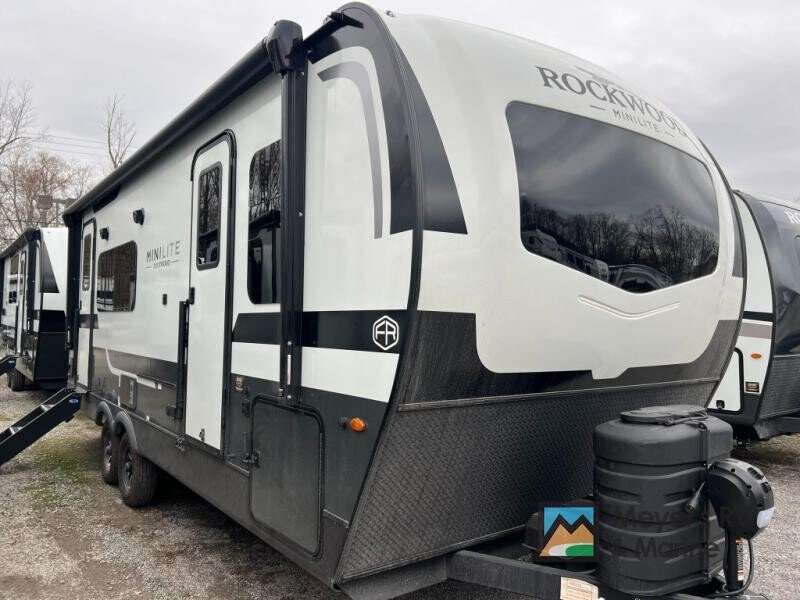 Each Rockwood Mini Lite travel trailer by Forest River is constructed with a fully laminated one-piece walkable roof, sleekframeless windows,and a six-sided full aluminum frame for strength and durability. The12V thermostatically controlled heated tanks, plus radiant foil in the underbelly will allow you to camp well into the colder months, and the200W roof solar panelwill be perfect for a little off-gridding. Each model includes solid surface kitchen countertops,hidden hingecabinet doors, roller shades, plus many more interior features.Having an AIR 360+ omnidirectional antenna with WiFi prep on board gives you the option to get some work done if its needed, and the power tongue jack provides hassle-free set up, so you can enjoy more time relaxing!