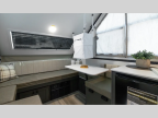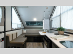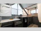 The gaucho bed is your cozy nest, perfect for snoozing, reading, or stargazing. The handy table transforms into a dining spot or workspace, ideal for savoring meals or planning your next move. The under-bed AC keeps things chill, so you can soak up the fun, not the sweat. The two-burner cooktop and fridge are all you need to create tasty treats and keep drinks cold. The dormer adds a dash of extra space and natural light, making cooking a joy. Exterior storage is perfect for packing your gear, surfboards, and more. Get ready for anything with ease.