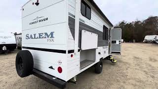 This RV offers a bright, efficient interior optimized for everyday living on the road. The single slide expands the main living area, providing a more open feel for dining, lounging, or relaxing after a day of exploration. A single air conditioner (13.5K BTU) keeps the cabin cool during warm camping seasons, while compact storage and modular layout help you organize essentials without sacrificing functionality. Perfect for couples or small families seeking a nimble, easy-to-tow recreational vehicle with modern conveniences.