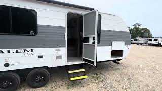Spacious and Efficient FloorplanMeasuring approximately 28 feet 3 inches in length and 8 feet wide, the Salem FSX offers a smart layout with a front bedroom, mid kitchen, and rear bath. With enough space to comfortably sleep four people, this RV features a cozy queen bed and a versatile floorplan perfect for couples, small families, or groups of friends. The open and functional design ensures each part of the RV is easily accessible and optimized for comfort.