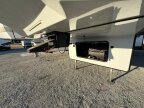 This fifth wheel is packed with convenient features to make your travels more comfortable and enjoyable! The master bedroom includes a king bed slide out with USB ports on either side of the bed so you both can charge your phones, and there is a dresser for your folded clothes. You will love the front bathroom with dual bath sinks, a fiberglass one-piece shower, plus a walk-in closet with shelves and rods to hang clothes! There is a unique middle utility room with washer and dryer prep if you want to add these, a Washer and dryer counter and a rod to hang clothes that will make a perfect laundry room, or you can utilize this space for storage! Head to the main living area to relax on the theater seating or hide-a-bed sofa, and if you have guests stay over, they can sleep here. There is also an entertainment center with a 50 flat screen TV, but you might just leave that off if youre working at the desk with a chair that is provided. Weve saved the best part for last, the kitchen! Here, youll find ample counter space to prep home-cooked meals, a three-burner range with a 24 oven, plus a large counter with barstools where you can enjoy breakfast at each morning. Choosing this fifth wheel is a no-brainer!