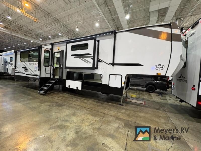 Each one of these Forest River Sierra fifth wheels are equipped with everything you need to make the most of each adventure! The underbelly armor will protect your units vitals from road debris and the painted two tone aerodynamic fiberglass front cap has an improved turning radius to make them easier to navigate. With an electric leveling system, you can set your unit up quick and easy then get to having fun faster than ever. The cambered powder coated frame with rust prohibitor construction allows for more duration of the fifth wheel. Each model also comes with a TV antenna with booster, 60,000BTU on demand tankless water heater, Goodyear Radial tires with 7,000 lb. axles, and the list goes on. The interior is just as impressive with Beachside Sundance Congoleum linoleum, recessed residential lighting, a memory foam mattress, and hidden hinged, soft close drawers and cabinets!