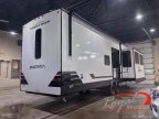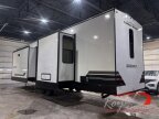 Enjoy extended stays in this triple slide out destination trailer! Once you unload your bags, you can put out the 19 awning with LED lights and relax in your camp chairs. The Chef Collection three burner range will let you make lunch for your crew when you head inside, and there is a free-standing dinette with a bench and two chairs to dine at. After your meal, you can relax on the theater seating across from the entertainment center with a hidden pantry behind it. There is also a front tri-fold hide-a-bed sofa to let guests sleep over. The mid-coach half bath will be easily accessible to use, and the full rear bath will create a master bedroom you are sure to love. There is a king bed slide out here, a dresser with TV prep, and two wardrobes to keep your things tidy!