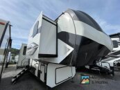 Youll love camping and spending time with loved ones in this spacious travel trailer. The 18 power awning with LED lights can be set up once you arrive at the campground, and you can unload camp gear from the pass-through storage. Head inside to make lunch on the residential range top or in the microwave oven. There is a booth dinette and tri-fold sofa for seating space, plus an additional counter with bar stools beside the dinette. A full bath onboard lets you clean up each day, and the front queen bed is sure to bring a great nights rest. There are also dual wardrobes to keep your space tidy and overhead storage for even more belongings.