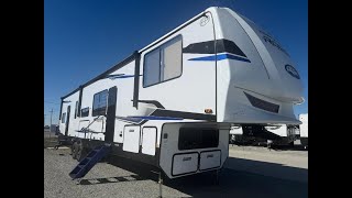 This toy hauler is perfect for a larger group since it can sleep up to eight with the added loft in the garage. There are also dual flip-up sofas here, along with a queen bed above and a half bath for added convenience! The dual entry full bath is up front, creating a master bedroom you are sure to love. There is a king bed slide out, a front wardrobe, and a dresser to keep your things organized. Head to the middle kitchen and living room to relax on the sofa within the large slide out, dine at the table with four chairs, and cook in the full kitchen. This unit also includes a fireplace to make it cozier, a large pantry to keep snacks stocked, and dual power awnings to expand your living space outdoors!