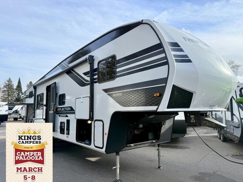 Each Reflection 100 Series fifth wheel by Grand Design is affordable and packed with luxury for unforgettable camping memories! The MorRyde CRE3000 suspension system and Goodyear Endurance tires will provide smooth towing from home to campground. And the solar package with a 180W solar panel, 60 Amp charge controller and 12V refrigerator will allow you to camp for longer periods of time and in more locations! A heated and enclosed underbelly with circulating heat is included in the Arctic 4-Seasons Protection Package, along with a double insulated roof and front cap, and thermofoil insulation under the holding tanks so you can camp all year long if you choose. You will appreciate having an on-demand water heater for hot showers after exploring, and the universal all-in-one docking station will let you monitor your RVs tanks levels and functions with ease. These models also include many luxurious interior features, such as premium Congoleum flooring, pleated shades, residential cabinetry, and matte black fixtures and hardware. Dont let the Reflection 100 Series fifth wheels pass you by!