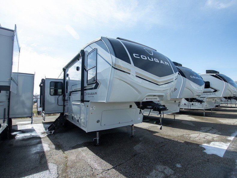 The Keystone Cougar Half-Ton fifth wheel and travel trailers are known as one of Americas favorites for a reason! Some of those reasons are the exclusive features that come from Keystone, like the Winegard Air 360+ omni-directional rooftop antenna, the in-floor heating ducts, and the HyperCore composite wall construction with Vixen Fibrogloss high-gloss finish. The Cougar Half-Ton has a Climate Guard protection package with heat-deflecting white sidewalls, two roof attic vents, PEX plumbing and more to enjoy four season camping. Inside, youll love the dimmable lighting, night roller shades throughout, shower skylight, and bedside USB outlets to keep your electronics charged.