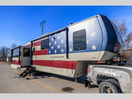 Spend more time having fun and less time worrying about your RV with the Keystone Cougar fifth wheel! These units have all that you will need for excellent vacations. The interior comes with 5/8 one-piece DynaSpan flooring, tall slide outs for added comfort and head room, night roller shades throughout, and residential, shaker style hardwood cabinet doors and drawers. You will also enjoy decorative crown molding, a 5,500 BTU electric fireplace with thermostat control and remote, and a Max Air exhaust fan with rain sensor. The exterior is also fully outfitted with a convenience center, friction-hinge entry door, electric four-point auto leveling system, and slam-latch baggage doors.Each model is available with the optional Hero Edition. By choosing this edition, you can help support our nations heros and their families by contributing to the Wounded Warrior Project. This optional package features an industry exclusive full-body paint matte finish, frameless windows, a glass entry door, blackout rims, and green LED exterior accent lighting; see dealer for more details!