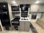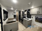The whole gang will love camping in this travel trailer with double-size bunks! Youll enjoy your own Olympic RV queen bed up front in the semi-private bedroom, along with dual wardrobes to keep your things tidy. Once the chef of your group has made dinner on the three-burner cooktop, you can dine at the booth dinette or take your plate outdoors to sit under the 16 power awning with LED lights. There is also a sofa with an end table inside that will provide additional seating and sleeping space. And dont overlook the rear corner full bath adjacent to the bunks for easy nighttime use!