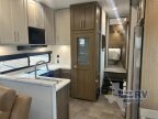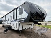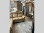 Enjoy time at the campground in this triple slide out toy hauler! The 15 separate garage includes dual opposing sofas with a top queen bed, an 8 garage door, a loft with a bunk mat, plus a half bath! The living area will be a favorite hang-out spot with its L-shaped sofa slide out in great view of theentertainment center with a fireplace. The kitchen features a U-shaped countertop, a spacious pantry and 12V refrigerator, plus a dinette with chairs to dine at. A full bath removes the need to use the camps facilities, and the front private bedroom will feel just like home with its 60 x 74 queen bed and slide out master closet!