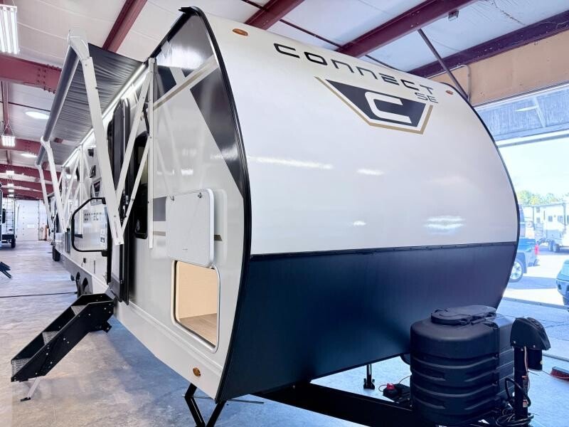 Each Connect SE travel trailer by KZ includes an NXG frame, which is a high quality, highly engineered frame that provides a lightweight yet strong foundation for your RV.The Climate package provides added insulation to extend your camping season year-round with a fully enclosed, insulated and heated underbelly to protect the tanks and pipes. Some top features include the 17-inch range with illuminated control knobs, the seamless countertops with a deep undermount stainless steel kitchen sink including a sink cover for added countertop space, and a black high-rise faucet. You will also enjoy the KZ Engagethat is powered by OneControl to monitor and control the battery levels, the slide(s), the leveling system, the awning(s), plus the inside and outside lighting. Choose your favorite today!