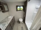 Kitchen, Bath & Everyday ConvenienceThis travel trailer is equipped for full-time camping comfort. The kitchen includes a microwave, oven, stove, and kitchen sink, along with a pantry and medicine cabinet for practical storage. For daily refresh, you get a dedicated shower and a complete toilet setup as part of the rear bath configuration.