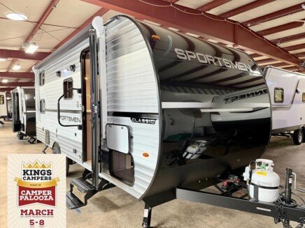 With any Sportsmen Classis travel trailer by KZ you will find durable construction materials, like the3/8 fully-walkable roofand the one-piece seamless Tufflex material. Each model includes scissor-style stabilizer jacks, a Key-Alike program for baggage and entry doors, and aLeash Latchwith a bonus beverage opener. You will find interior andexterior speakersplus backup camera prep and solar prep. The Sportsmen Classic is designed to make you feel at home withrail-style cabinet doors,residential grade linoleum, and plenty of storage space for all your belongings.