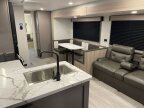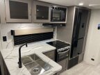 Inside, the 332BHK maximizes space with a thoughtful layout that accommodates both relaxation and practicality. The rear bunkhouse provides multiple sleeping areas for kids or guests, while the main living area features a large slide-out with theater seating and a U-shaped dinette, ideal for dining, entertainment, or family time. The fully equipped kitchen includes stainless steel appliances, solid-surface countertops, a pantry, and ample storage, making meal preparation simple and efficient. Large windows throughout the trailer fill the space with natural light and scenic views.