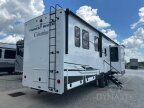 The front kitchen in this fifth wheel is a chefs dream come true while camping! There is generous counter space up front and beside the range, plus a pantry and 12V 18 cu. ft. 3-door refrigerator with ice. There is also a hi-top table with two bar stools that overlooks the living area. Inside the living area there are opposing sofa sleeper slides and power theater seating across from an entertainment center with a 50 Smart TV. A mid-coach half bath is easily accessible, and the full rear bath with dual bath sinks will create a master bedroom you are sure to love. There is a king bed slide out, a wardrobe, hamper, and a TV/storage.