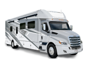 Extreme luxury, extreme purpose, and extreme durability is what you will find in each one of these Renegade Explorer Super C diesel motorhomes! They are more advanced than ever with a Freightliner Cascadia 116 chassis with an Allison TRV4000 transmission or Detroit DT12 12-speed transmission, a Detroit DD13 engine, and 525HP. The spacious interior is beautifully designed with tile floors, full maple, hardwood residential style cabinets, tile backsplashes, and ultra soft touch vinyl furniture upholstery. A multiplex system comes with Bluetooth app control so you can use it at the touch of a finger, and the Girard 2-Stage lateral arm rooftop awning with LED lights will protect you rain or shine and night or day. The exterior also has nine full body paint treatment colors to choose from and a four-point automatic hydraulic leveling system. Start driving in style today!