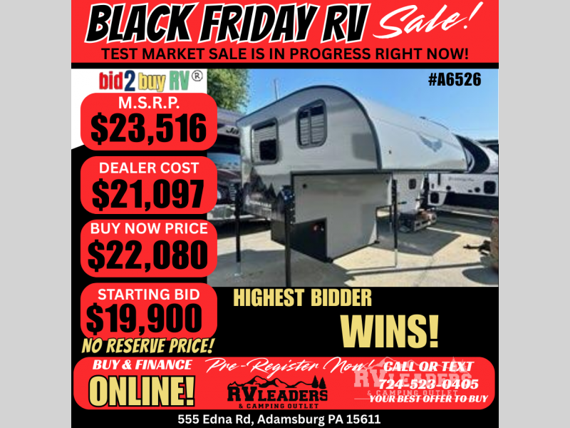 Each one of these Soaring Eagle ADLAR truck campers take the concept of entry level campers and adds real functionality to it! Their entire construction consists of an all aluminum tubular construction for better strength, lighter weight, and indifference to water. The smooth fiberglass exterior and rugged black diamond pate aluminum skin around the lower perimeter will turn heads in the highway. There are LED exterior marker/clearance lights and LED exterior security light over the entrance door for you to see clearly at night. Come find your favorite one today!